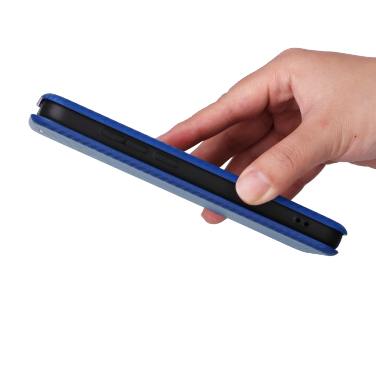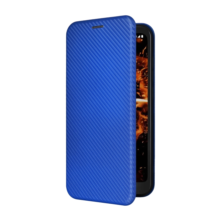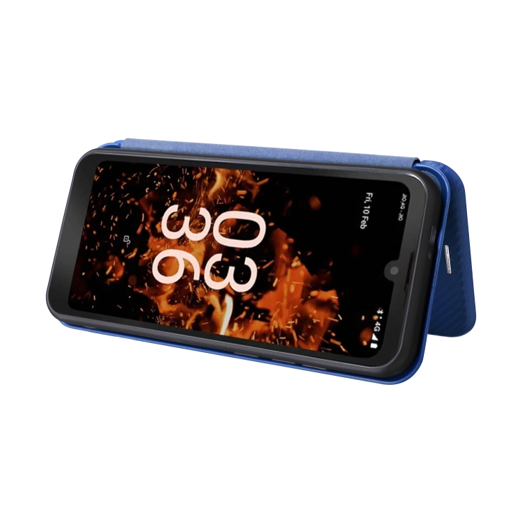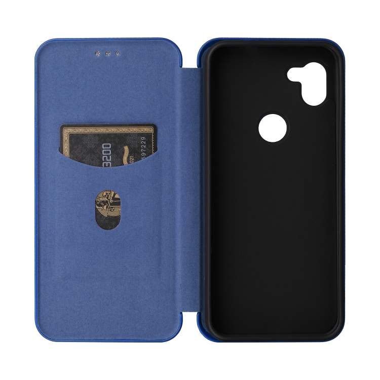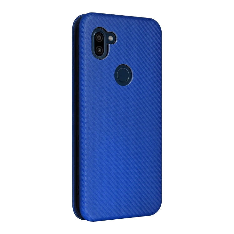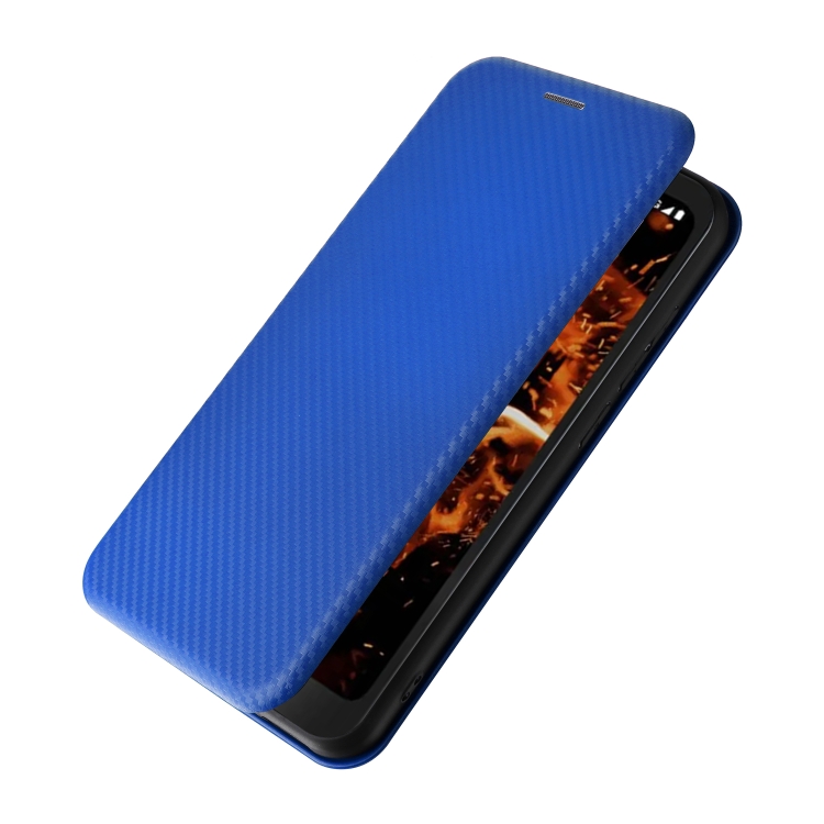 Funda de Cuero para Orbic Fun + 4G con Tapa y Textura de Fibra de Carbono (Azul)