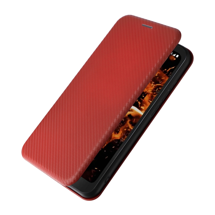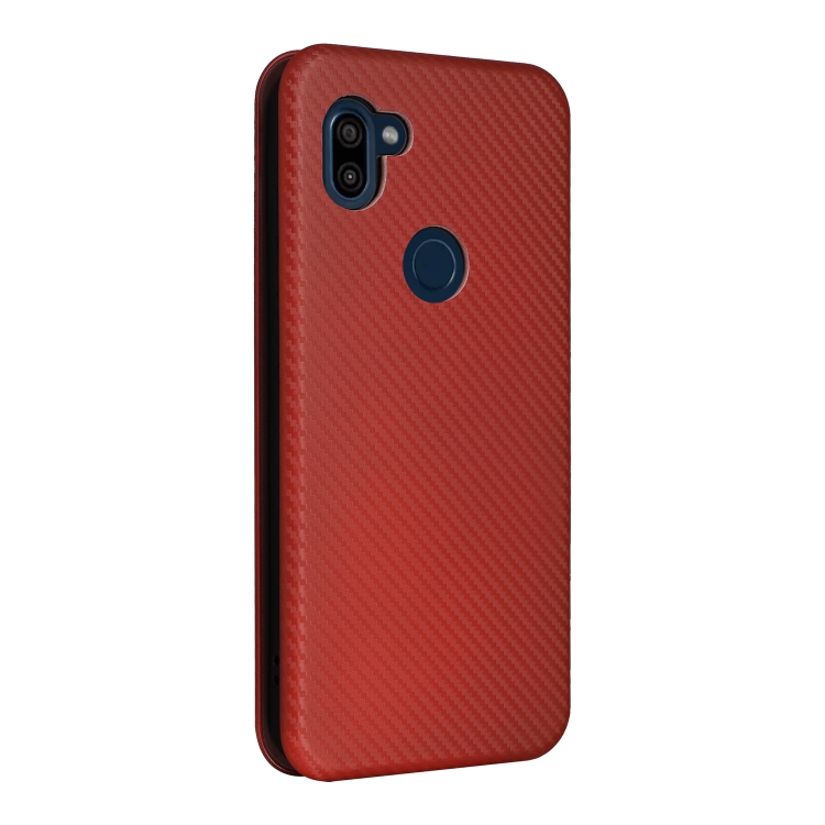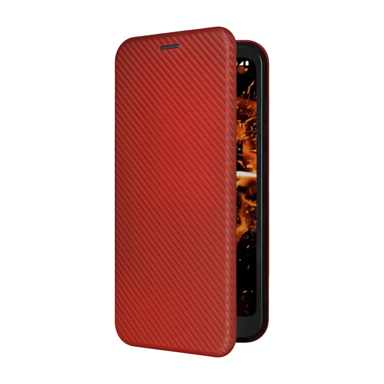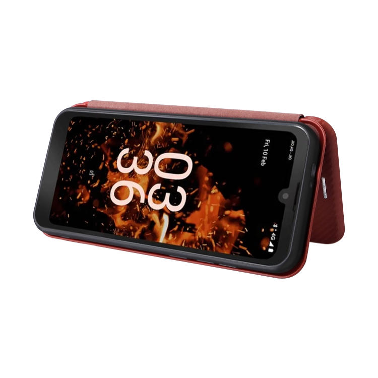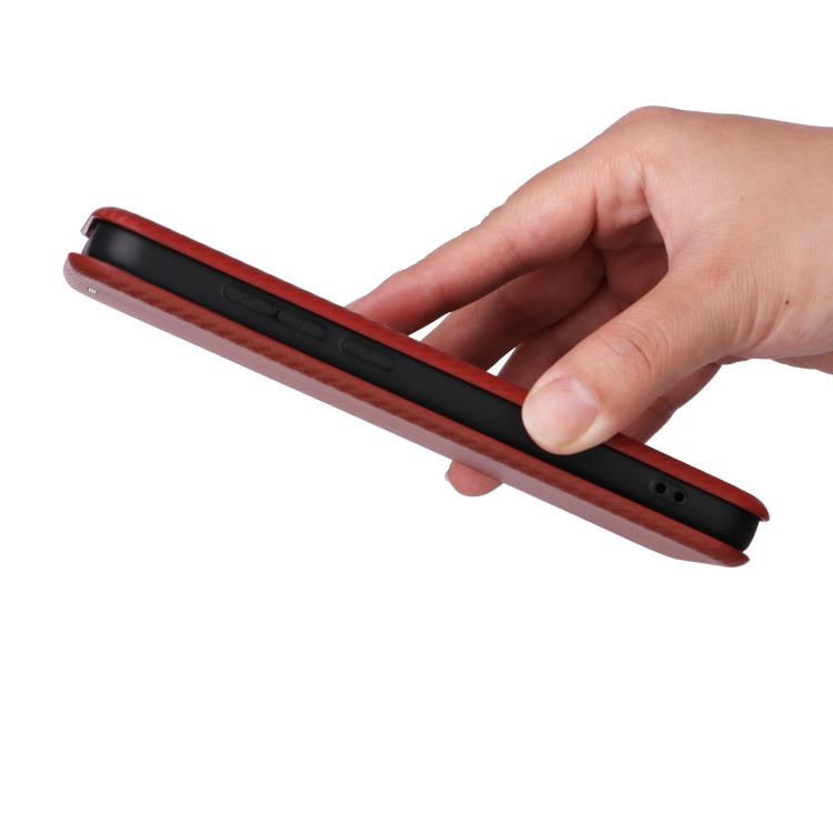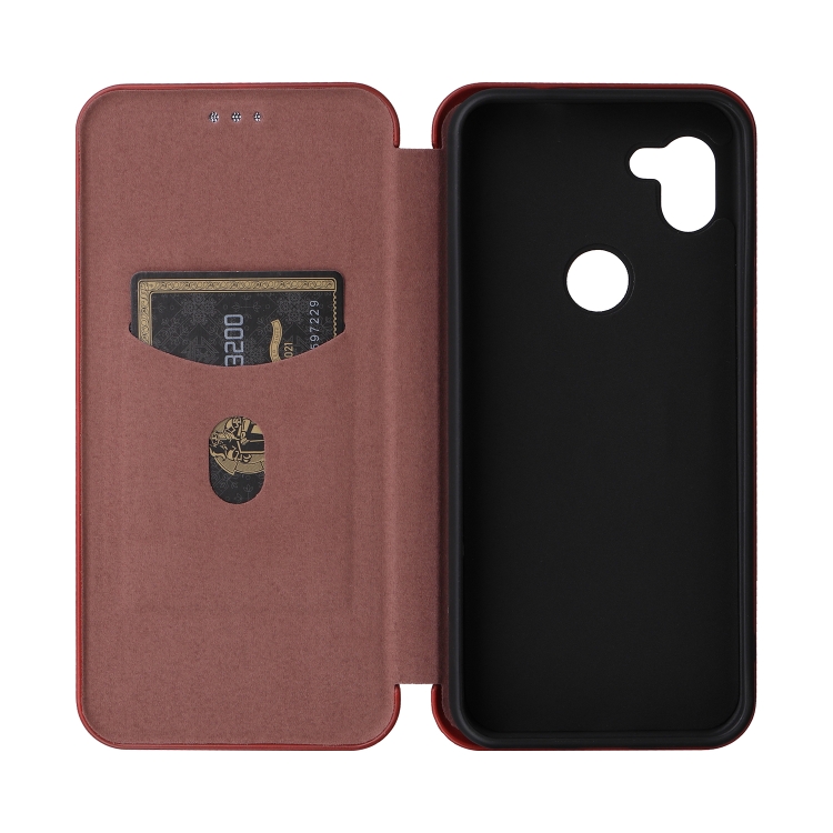 Funda de Cuero con Tapa para Orbic Fun + 4G con Textura de Fibra de Carbono (Marrón)
