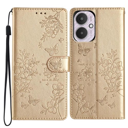 Para Redmi 13C 4G Funda de Cuero para Teléfono con Mariposas y Flores (Dorado)