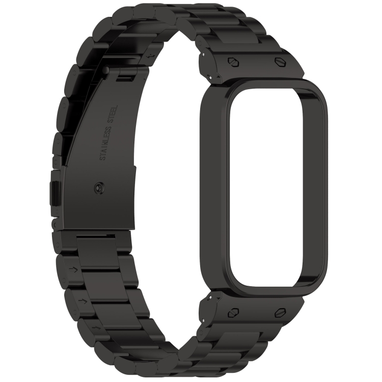 Para Redmi Band 3, caja de reloj con marco de metal, correa de reloj de acero inoxidable con tres cuentas integradas (negro)