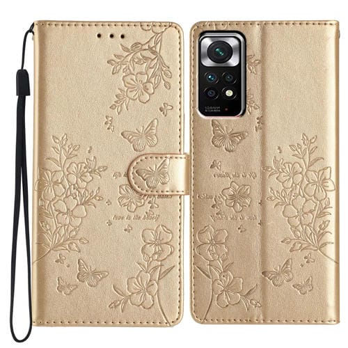 Para Redmi Note 11S 4G Funda de Cuero para Teléfono con Mariposas y Flores (Dorado)