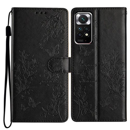 Para Redmi Note 11S 4G Funda de Cuero para Teléfono con Mariposas y Flores (Negro)