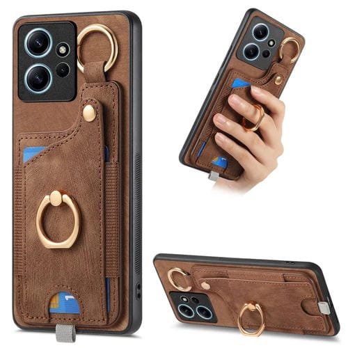 Para Redmi Note 12 4G Funda para Teléfono con Bolsa para Tarjeta con Anillo y Sensación de Piel Retro con Lazo para Colgar (Marrón)