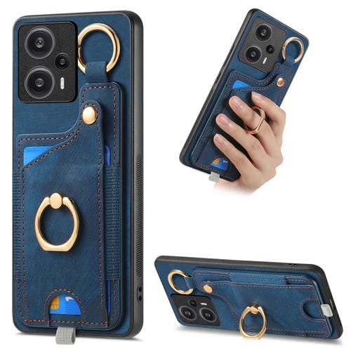 Para Redmi Note 12 Turbo Retro Skin-Feel Ring Card Bag Funda para Teléfono con Lazo para Colgar (Azul)