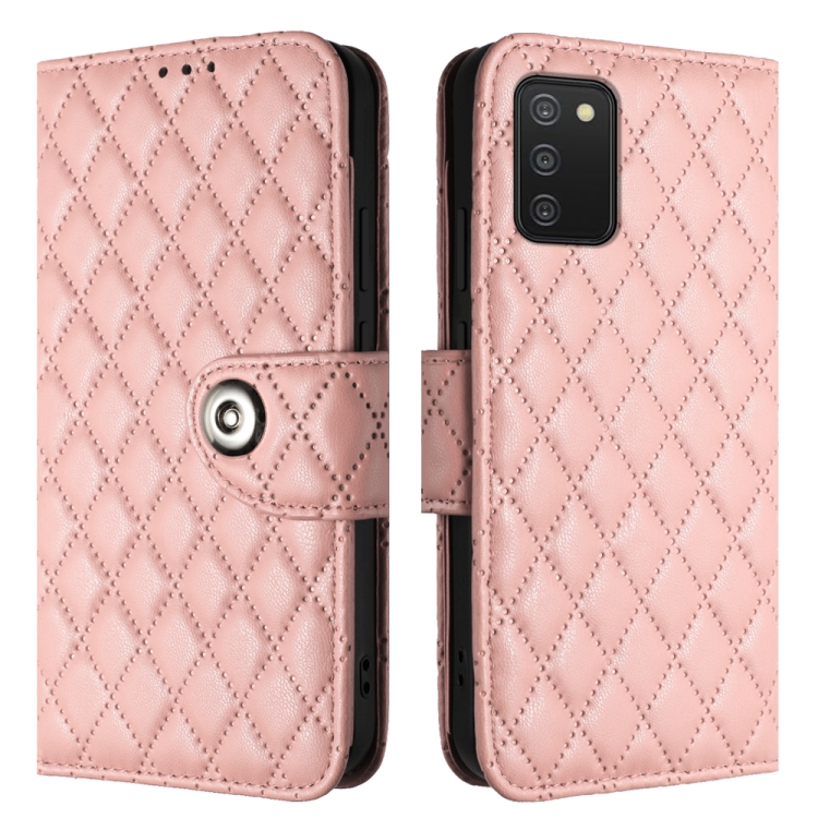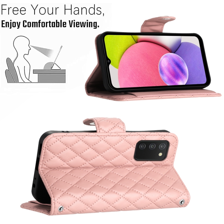 Funda para Teléfono Samsung Galaxy A03S Eu Cuero Textura Rómbica y Cordón (Rosa Coral)