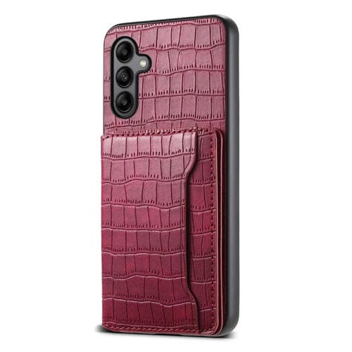 Estuche para teléfono Samsung Galaxy A05S diseño bolsa para tarjetas textura de cocodrilo (Rojo)