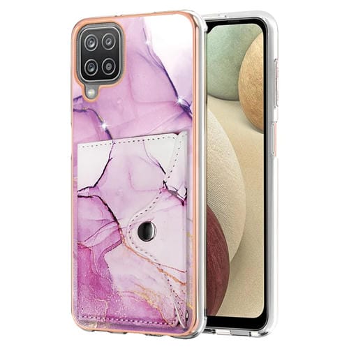 Estuche para Teléfono Samsung Galaxy A12 con Ranura para Tarjeta Imd y Patrón de Mármol (Oro Rosa Púrpura)