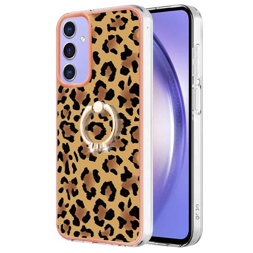 Estuche para Teléfono Samsung Galaxy A15 5G Imd Doble Cara con Galvanoplastia y Soporte para Anillo (Estampado de Leopardo)