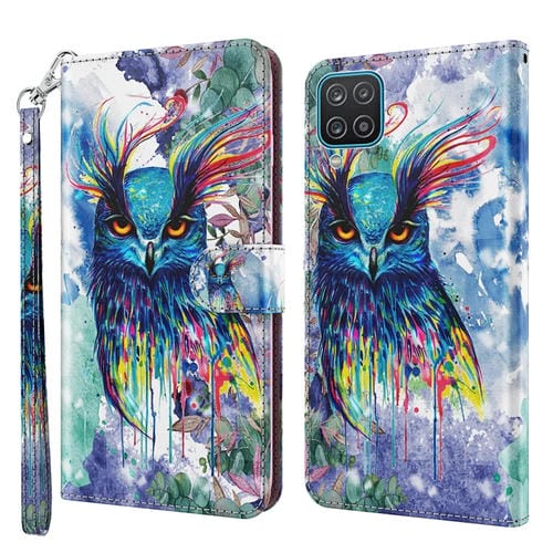 Funda para Samsung Galaxy A22 5G TPU y PU Caja de Cuero con Patrón de Pintura 3D (Búho de Acuarela)