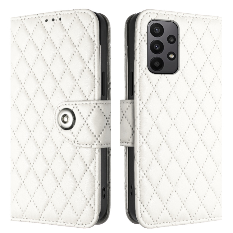 Funda para Teléfono Samsung Galaxy A23 4G F23 5G Tapa de Cuero Textura Rómbica Cordón (Blanco)