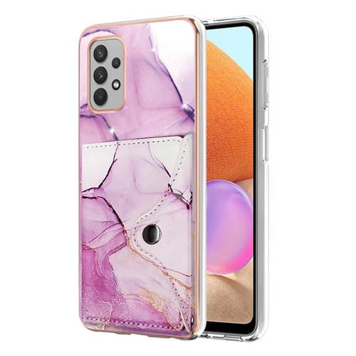 Estuche para Teléfono Samsung Galaxy A32 4G Versión UE con Ranura para Tarjeta Imd Patrón Mármol (Oro Rosa Púrpura)