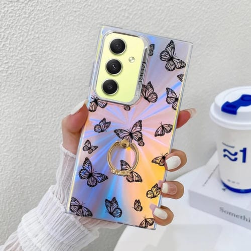 Estuche para Teléfono Samsung Galaxy A34 5G con Soporte Anillo Mariposa Láser Galvanoplastia (Negro)