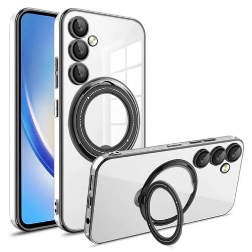 Estuche para teléfono Samsung Galaxy A34 Galvanoplastia Magsafe Soporte Rotación 360 grados (Negro)