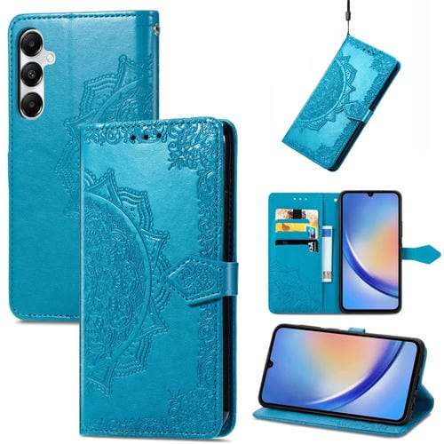 Funda para Teléfono Samsung Galaxy A35 5G Cuero Relieve Flor de Mandala (Azul)