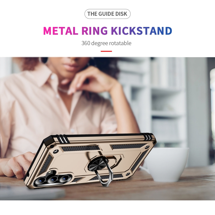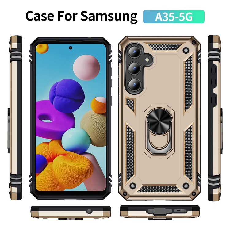 Funda para Teléfono Samsung Galaxy A35 5G TPU + PC Prueba de Golpes con Soporte (Dorado)