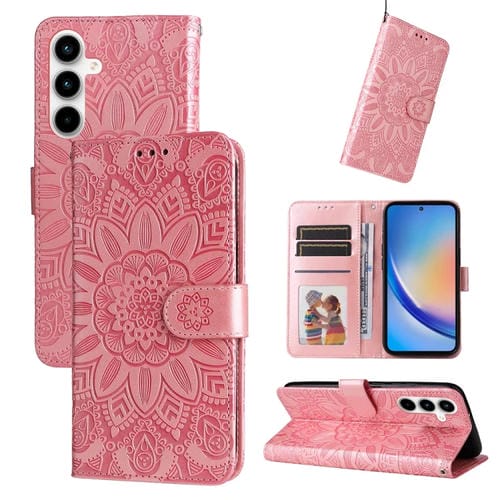 Funda de Cuero Samsung Galaxy A35 Girasol En Relieve (Oro Rosa)