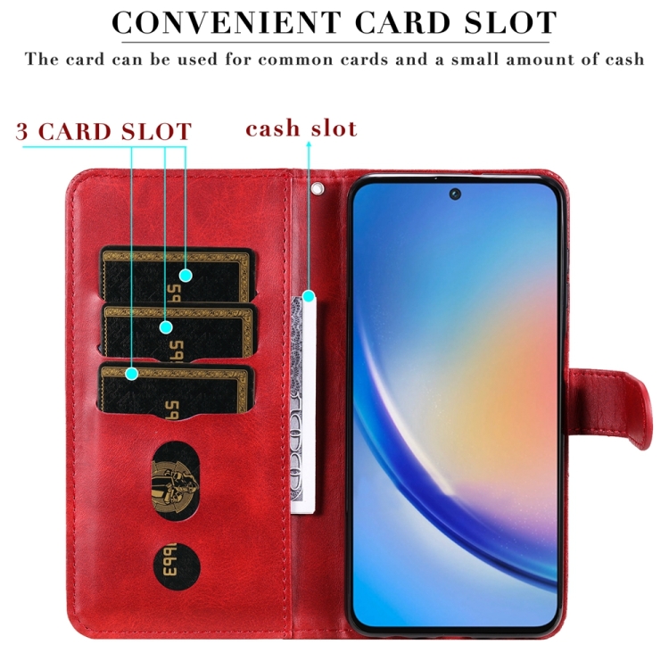 Funda para Teléfono Samsung Galaxy A35 Cuero con Cremallera y Textura de Becerro (Rojo)