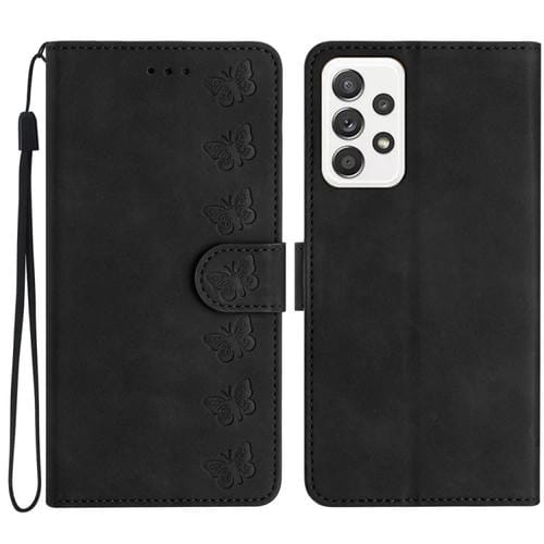 Caja de teléfono de cuero Samsung Galaxy A53 Seven Butterflies en relieve (Negro)