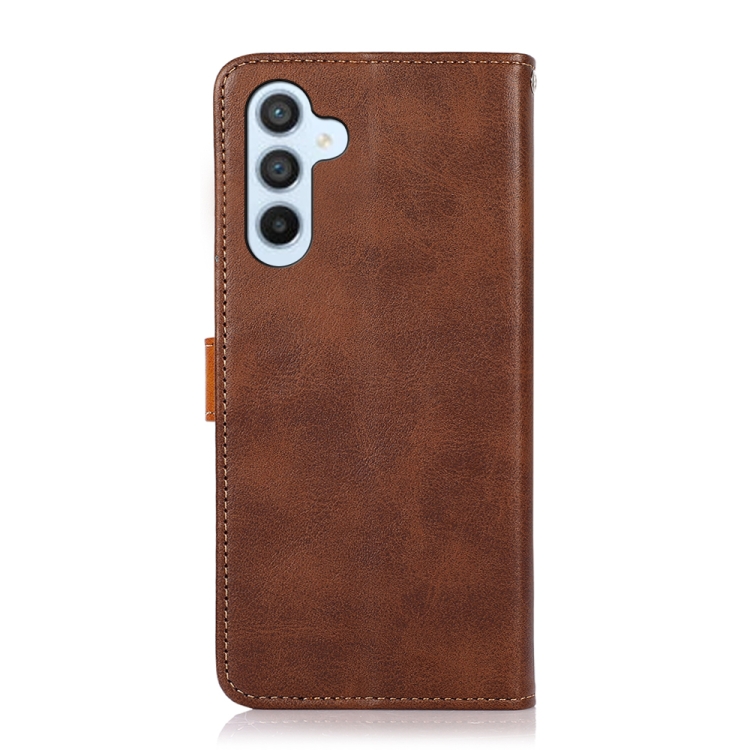 Funda para teléfono Samsung Galaxy A55 5G Khazneh de cuero con tapa y textura de piel de vaca (Marrón)