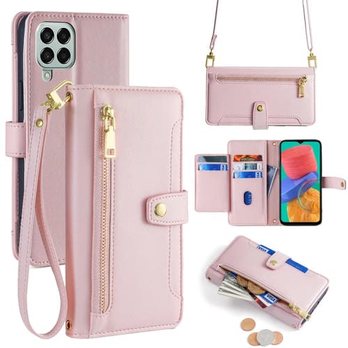 Funda para Teléfono Samsung Galaxy M33 5G Cuero Billetera Cremallera Cuerpo Cruzado Textura de Oveja (Rosa)