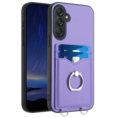 Estuche para Teléfono Samsung Galaxy M55 C55 5G R20 con Soporte para Tarjeta y Anillo (Púrpura)