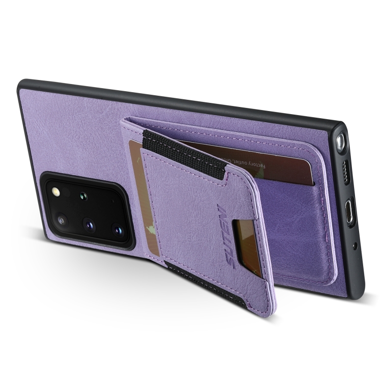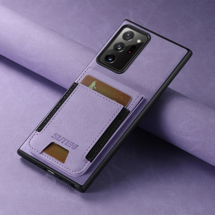 Funda para Teléfono Samsung Galaxy Note20 5G Suteni H03 con Soporte para Tarjeta Cuero Litchi (Púrpura)
