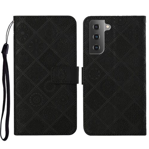 Estuche para Teléfono Samsung Galaxy S23 5G Cuero con Patrón En Relieve de Estilo Étnico (Negro)