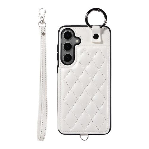 Estuche para teléfono Samsung Galaxy S24 + 5G con bolsa para tarjetas textura rómbica y cordón corto (Blanco)