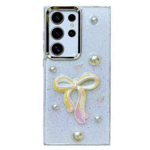 Estuche para Teléfono Samsung Galaxy S24 Ultra 5G TPU con Lazo Tridimensional Perla Flor de Amor (Arco de Perla)