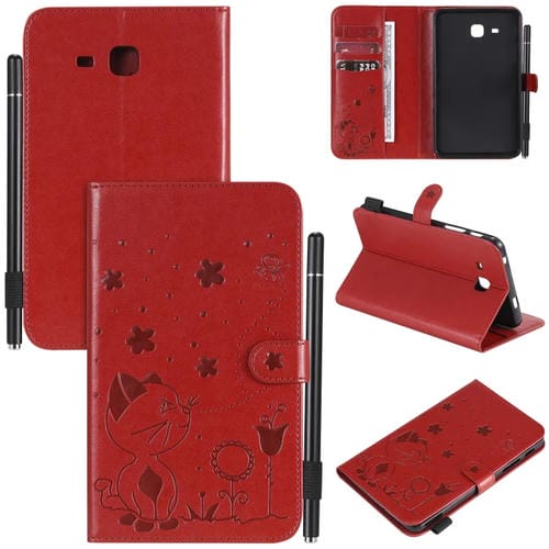 Funda Protectora Cuero Samsung Galaxy Tab A7.0 T280 Patrón Abeja Gato Soporte Tarjetas Billetera (Rojo)