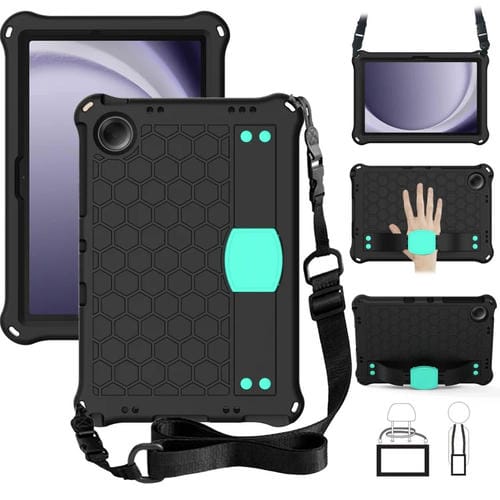 Funda para Tablet Samsung Galaxy Tab A9 + 11 X216B Híbrida Honeycomb Eva con Correa (Negro + Aguamarina)