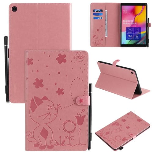 Funda Protectora Samsung Galaxy Tab A9.7 T550 Cuero Estampado Relieve Soporte Ranuras (Rosa)