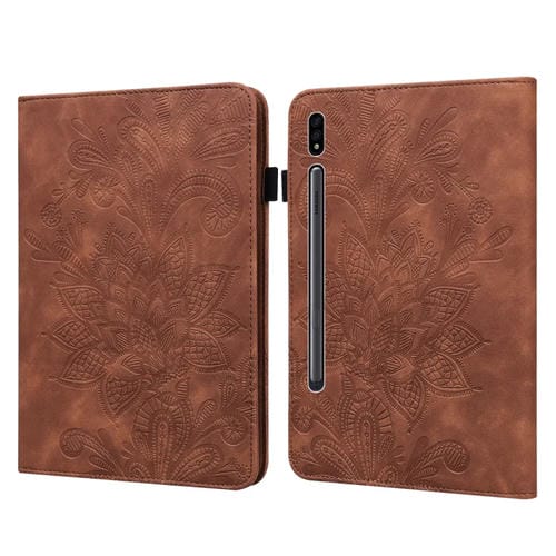 Funda para Tablet Samsung Galaxy Tab S9 Cuero Estampado Flores de Encaje (Marrón)