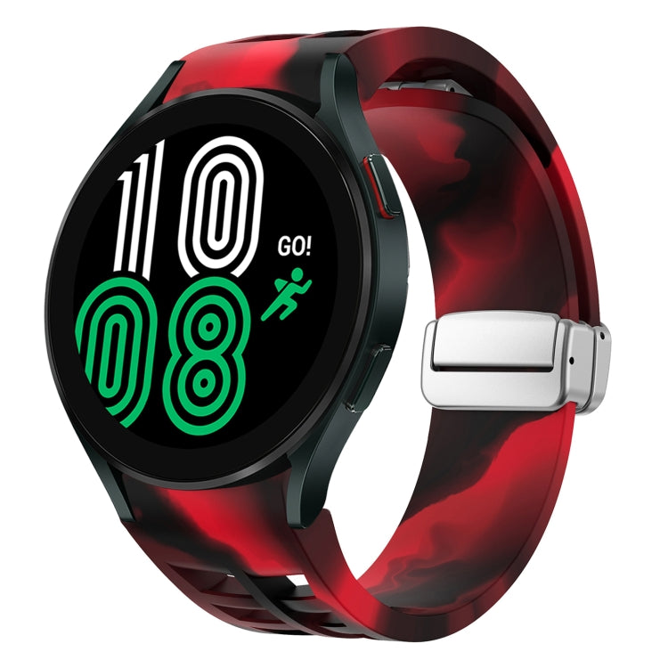 Correa de Reloj silicona para Samsung Galaxy Watch 4 40/44mm con hebilla plateada plegable magnética (Camuflaje Rojo Negro)