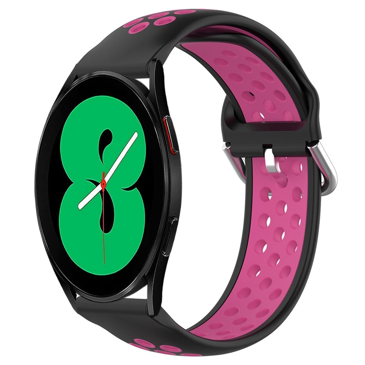 Banda de Reloj de Silicona Deportiva para Samsung Galaxy Watch 4 44mm 20mm Transpirable (Negro + Rojo Rosa)