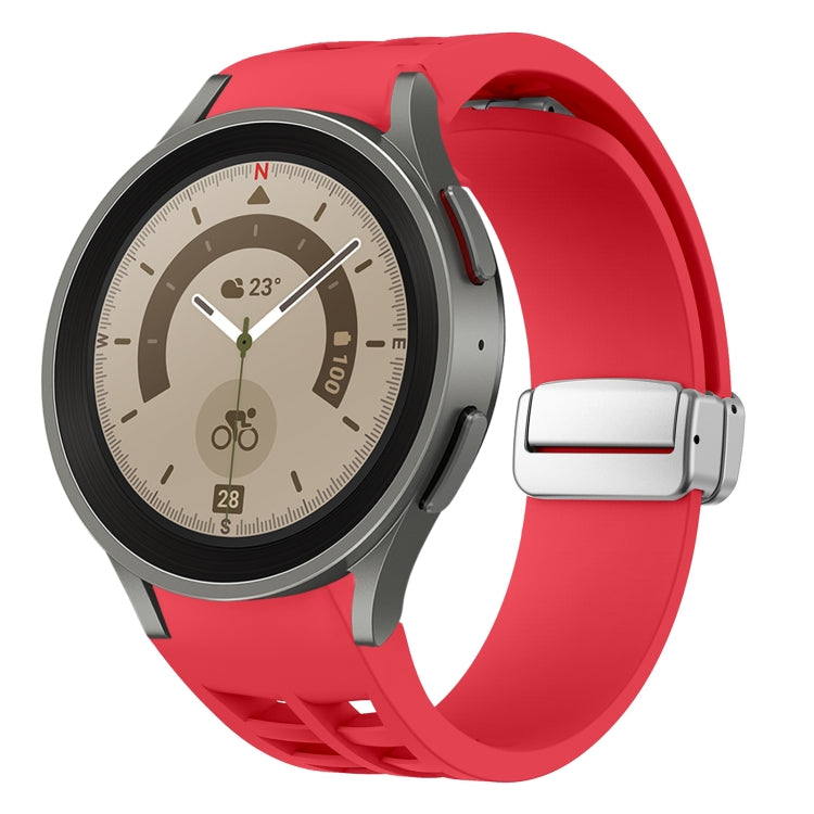 Pour Samsung Galaxy Watch 5 Pro 45 mm Richard Silicone Watch Band avec boucle argentée pliante magnétique (rouge)