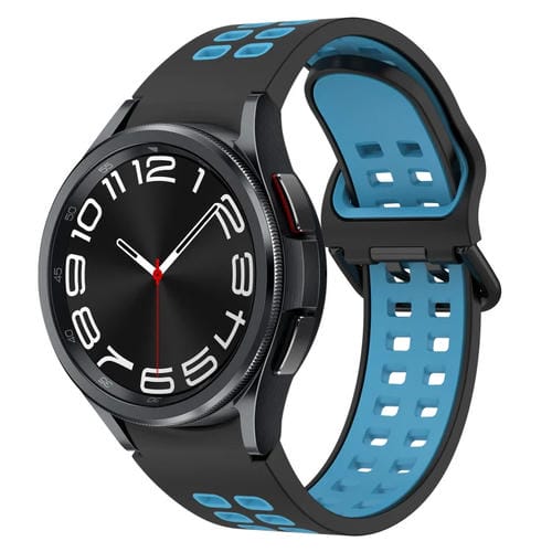 Banda de Reloj de Silicona para Samsung Galaxy Watch 6 Classic 47mm Transpirable (Negro + Azul)