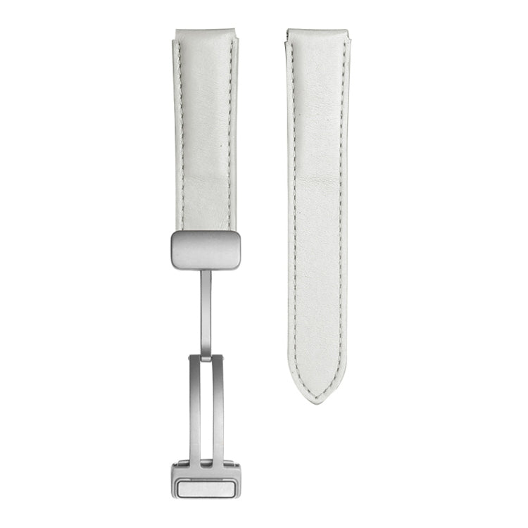 Correa de Reloj Samsung Galaxy Watch5 40mm 44mm Cuero Genuino Tejido Liso Hebilla Plateada (Blanco)