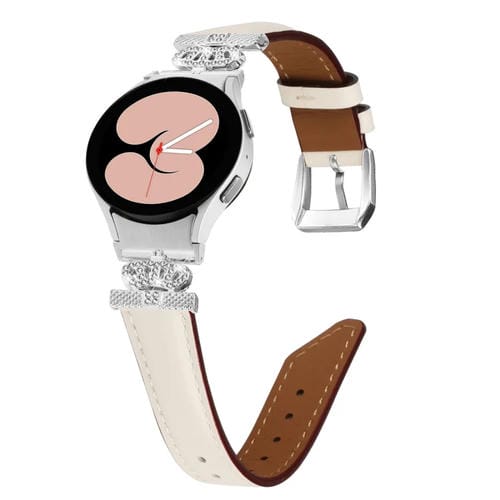 Correa de Reloj de Cuero Sarga para Samsung Galaxy Watch6/6 En Forma de D con Corona Clásica (Albaricoque Plateado)