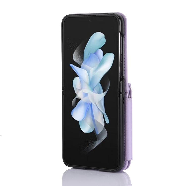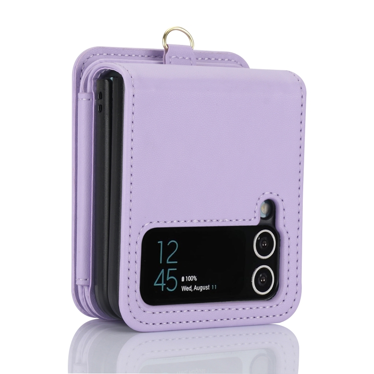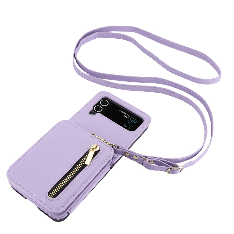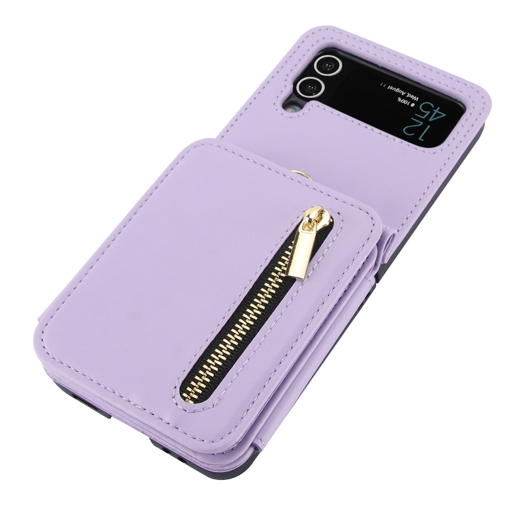 Estuche plegable para teléfono Samsung Galaxy Z Flip3 con ranuras para tarjetas y cremallera (Púrpura Claro)