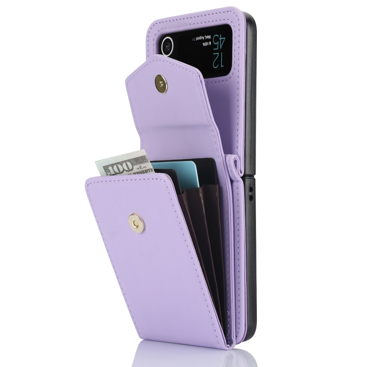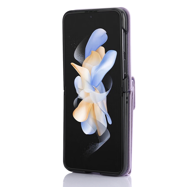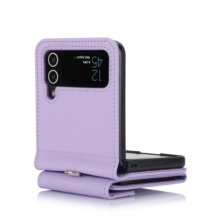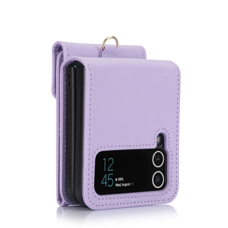 Estuche plegable Samsung Galaxy Z Flip4 con RFID Ranuras para Tarjetas y Cordón Largo (Púrpura Claro)