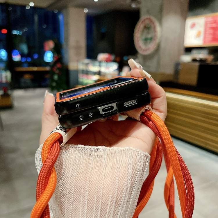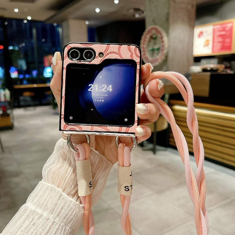 Funda Protectora Samsung Galaxy Z Flip5 5G Impression Camellia Pattern con Cordón Largo (Rosa)