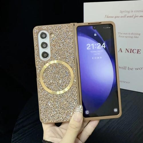 Estuche para Teléfono Samsung Galaxy Z Fold3 Purpurina Magsafe PC (Dorado)