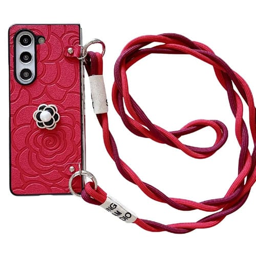 Funda Protectora Samsung Galaxy Z Fold5 5G Impression Camellia Pattern con Cordón Largo (Rojo)