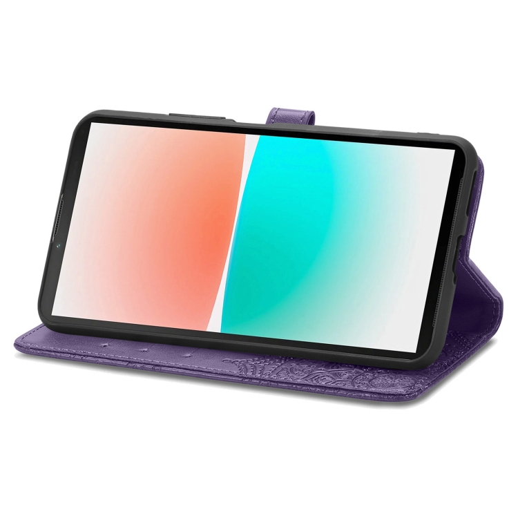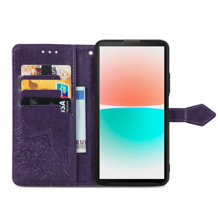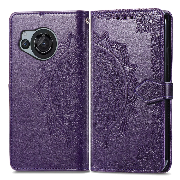 Funda de Cuero para Sharp Aquos R8 Mandala Flower en Relieve (Púrpura)