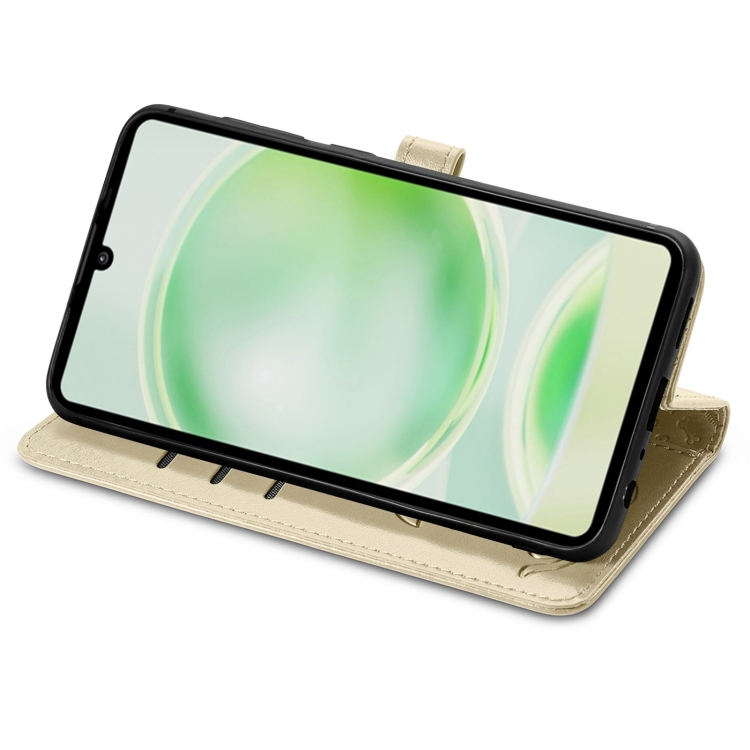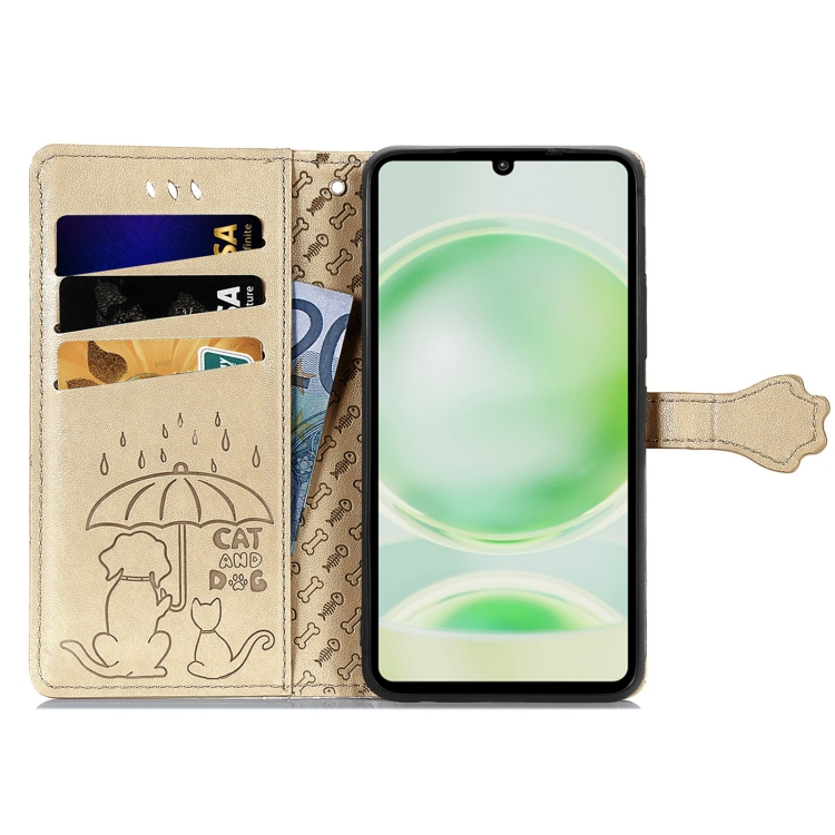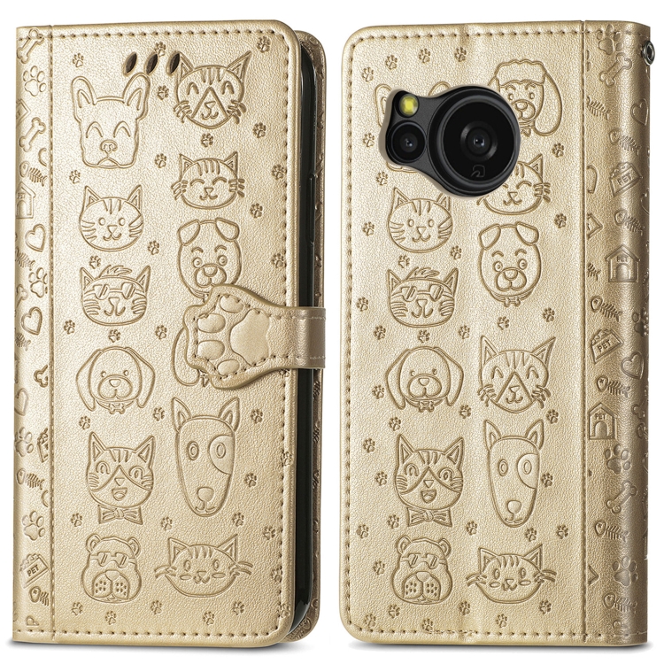Funda de Cuero para Sharp Aquos Sense8 con Relieve de Perros y Gatos (Dorado)