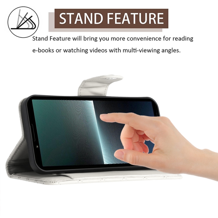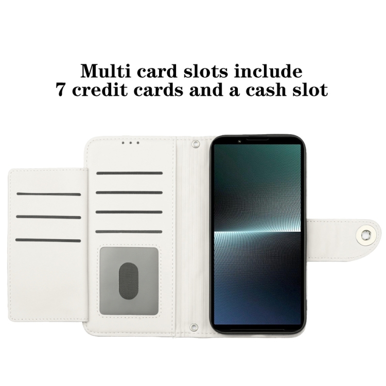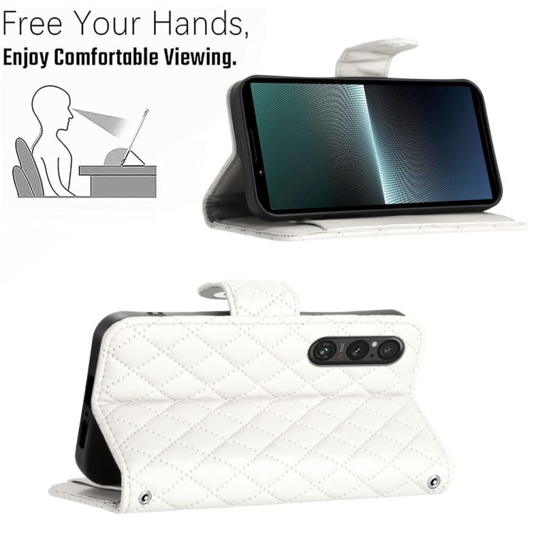 Funda de Cuero para Sony Xperia 1 V con Tapa Textura Rómbica y Cordón (Blanco)