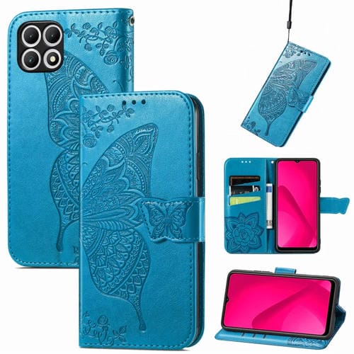 Funda para Teléfono T-Mobile Revvl 7 5G Cuero con Relieve Flor de Amor y Mariposa (Azul)