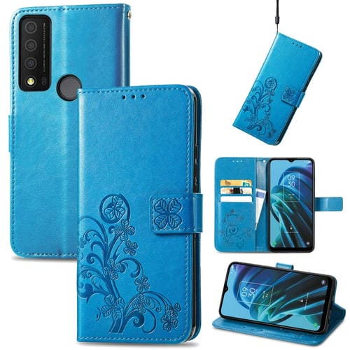 Funda de Cuero para TCL 30 Xe 5G en Relieve de Cuatro Hojas (Azul)