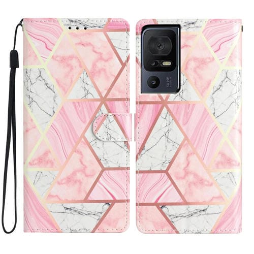 Funda de Cuero para TCL 40 Se con Dibujo Coloreado Mármol Rosa